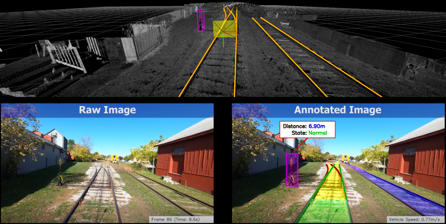 The research team will develop a deep-learning-based computer vision system for detecting track paths, static and dynamic obstacles using visual cameras and LiDAR sensors.